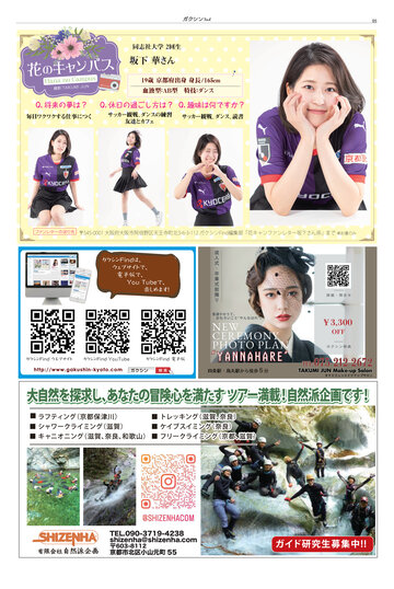 京都サンガF.C.のユニフォームを着て撮影に臨んだ今月の花のキャンパス、坂下華さん。彼女は京都サンガF.C.の「サンガキャンパス隊」の一員だ。元々京都サン