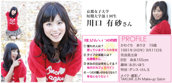 今回の花キャンはまさに「花」という印象の、明るく可愛らしい川口さん。しかも可憐な中にも凛々しさとたくましさを兼ね備えている印象を持ちました。特技は3歳から続けているダンス。ダンスのことについて話している時の笑顔は輝いていて、とても可愛かったです!