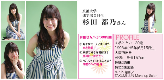 『ゆる〜い』印象が魅力的、長いまつげがとっても可愛い福田沙紀さん似の杉田都乃さん。名前の由来は、母親が、子供に「都乃ちゃん」と呼びかけている夢を見たところからきているという。