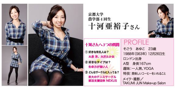今回の花のキャンパスは上品な魅力を持つ十河さん。知的な印象の彼女ですが、時折見せる無邪気な笑顔がとても輝いて見えた。