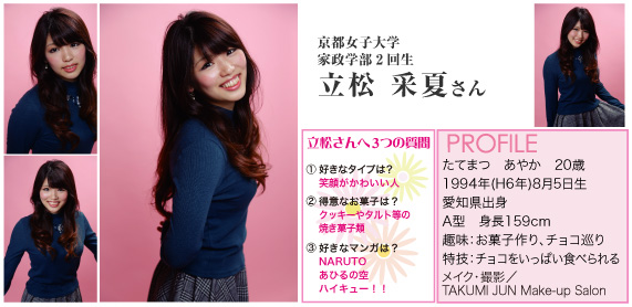 歴史学部の彼女は大学に通っていた証として学芸員の資格を取りたいと言う。これからも笑顔を絶やさず頑張ってほしい。